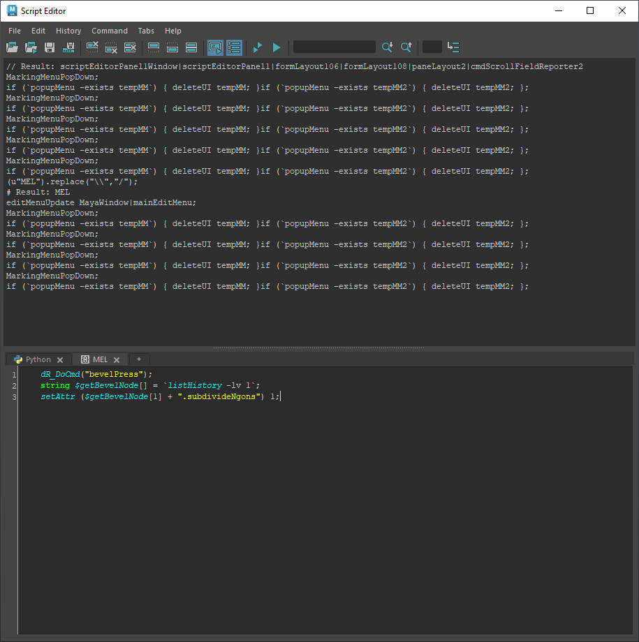 For this example we will use the Bevel mel code provided in the Free Tools section.