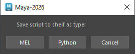 Once dragged a pop up window will appear 'Save script to shelf as type:' since our code is in mel select Mel.