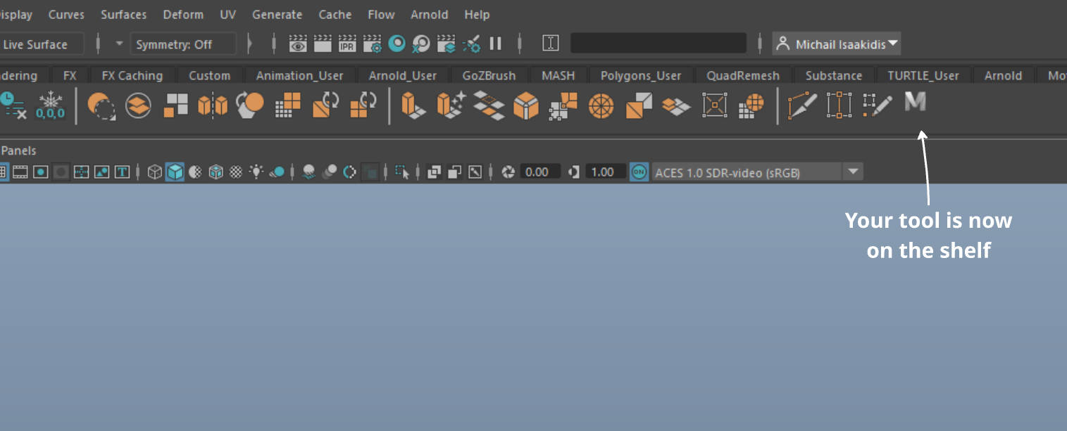 Your Shelf button is now created and you can now activate the tool by clicking on the button.